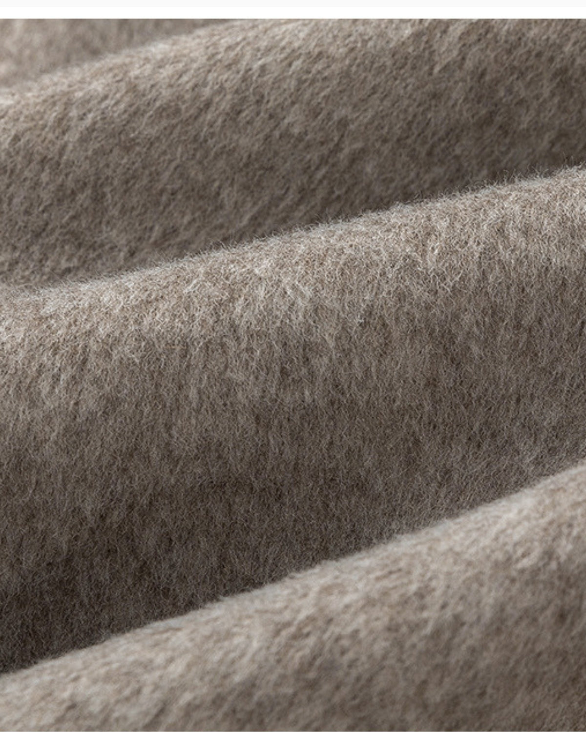 Hver detalj — fra den solide kragen til de kurvede lommene — fremhever håndverk og tidløs sjarm, og gjør den til et uunnværlig ytterplagg i moderne garderober.